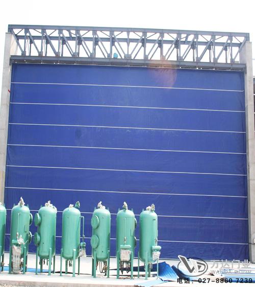 柔性大门是垂直折叠提升的斗门电动门,尺寸可依据具体门洞制作,可以拥有独立自我支撑结构,其门板材质为双层聚纤维基布,内嵌突出的钢制圆管抗风条承载基布与强大的风压。